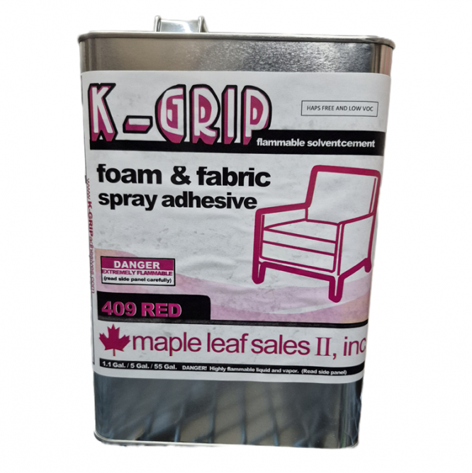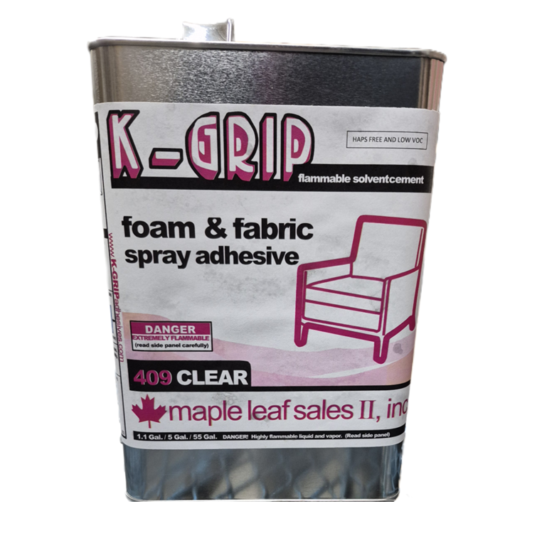 K-Grip 409 spray adhesive, the professional standard for foam and fabric.